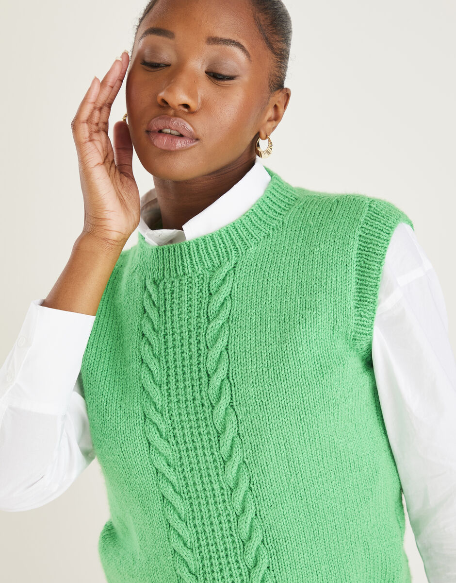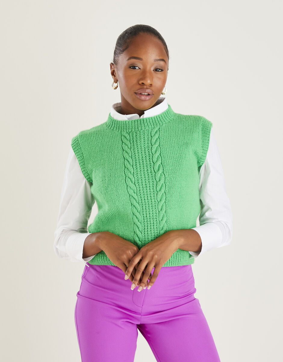 A pattern for more confident knitters, this design features short row shaping to give a distinctive neat finish to the armholes and a sleek fit. With its smooth stocking stitch contrasting a striking cable panel, we think you'll enjoy making this Sweater Vest from our Mood-Boosting Brights collection as much as you enjoy wearing it.
