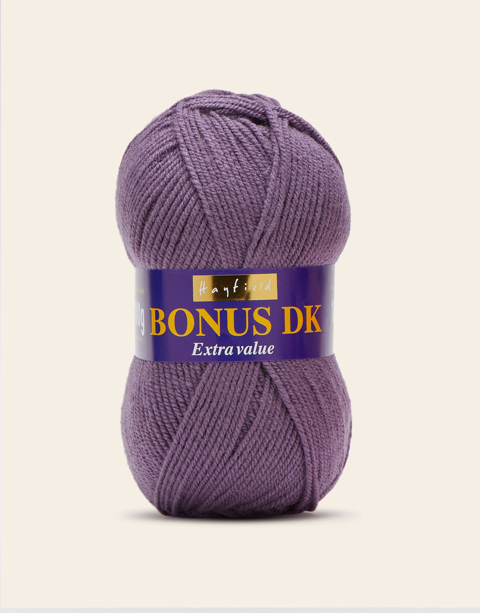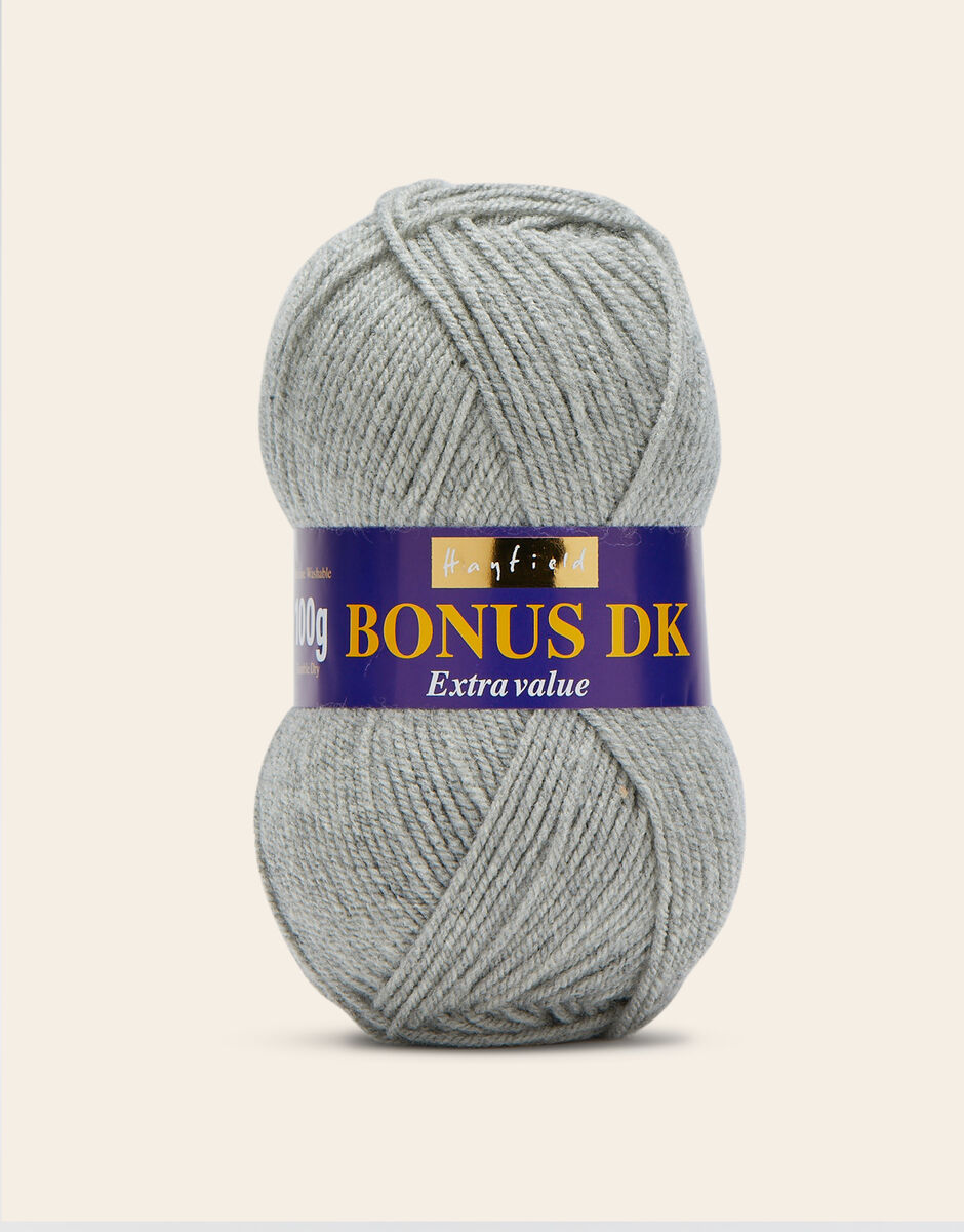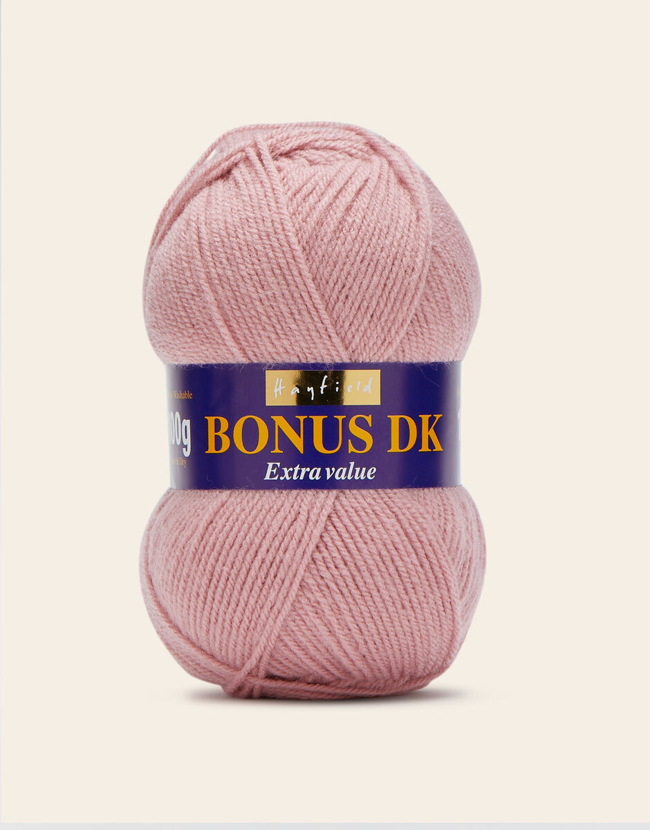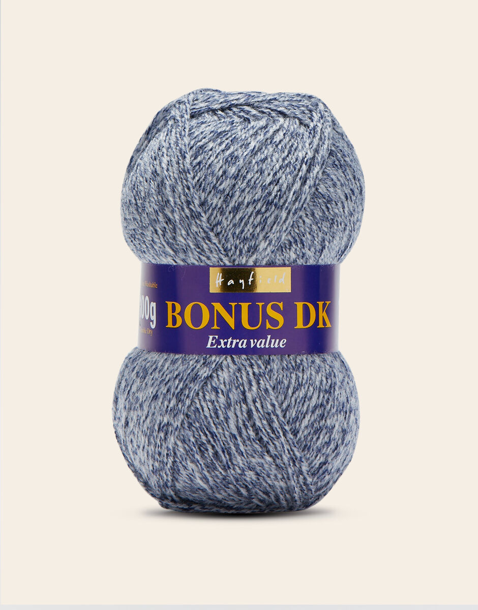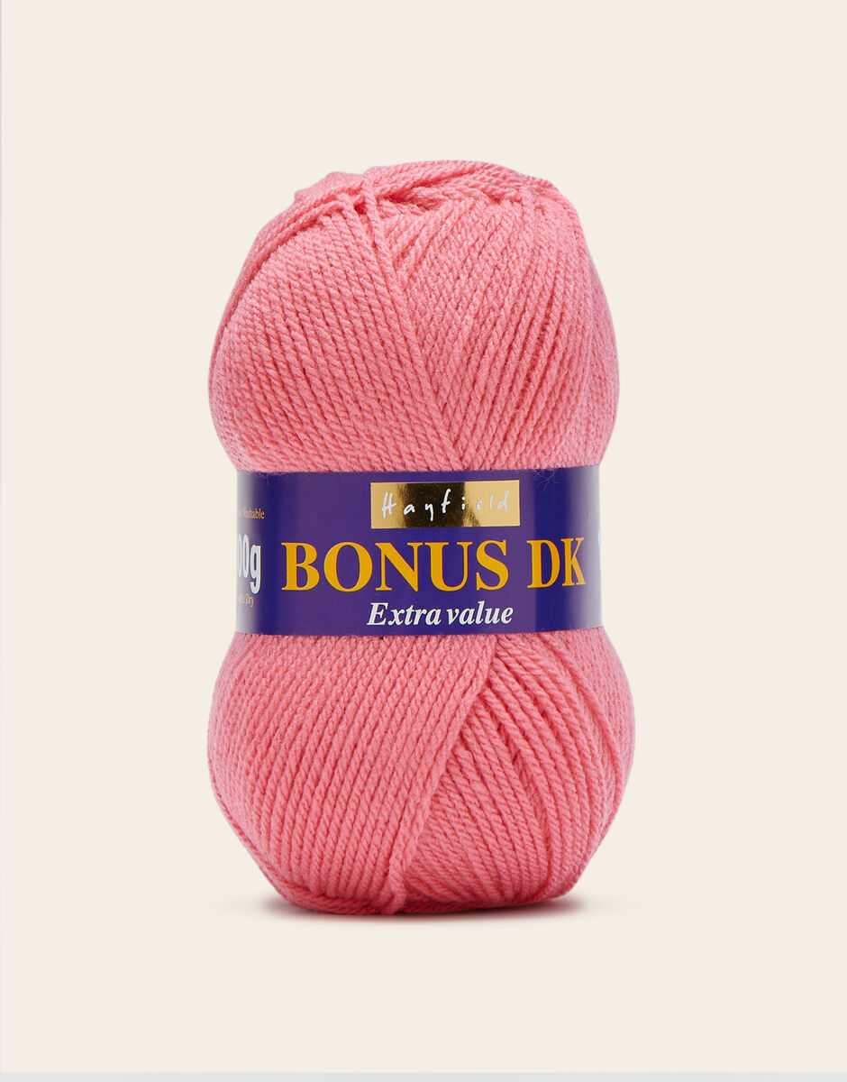 The best-selling weight in our popular Hayfield Bonus family, this double knitting yarn is a versatile, affordable quality acrylic. With 100 colours across ten trend-led themes, Bonus DK offers the most up to date colours for fashionable womenswear, stylish hand knits and crochet projects for your home. This soft, easy to knit, easy-c are yarn is machine washable.