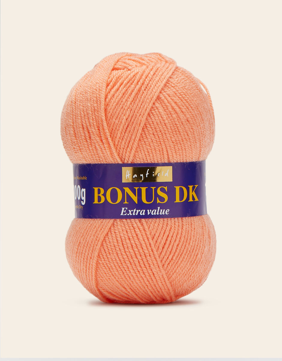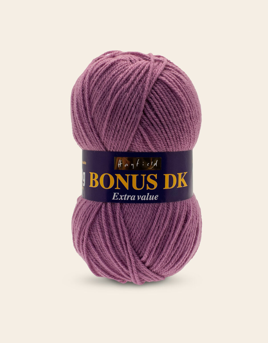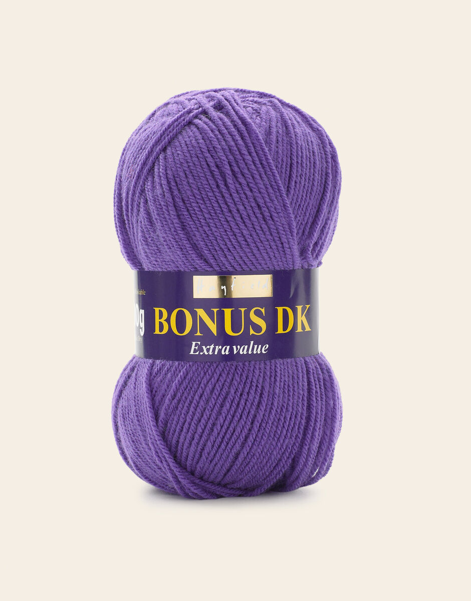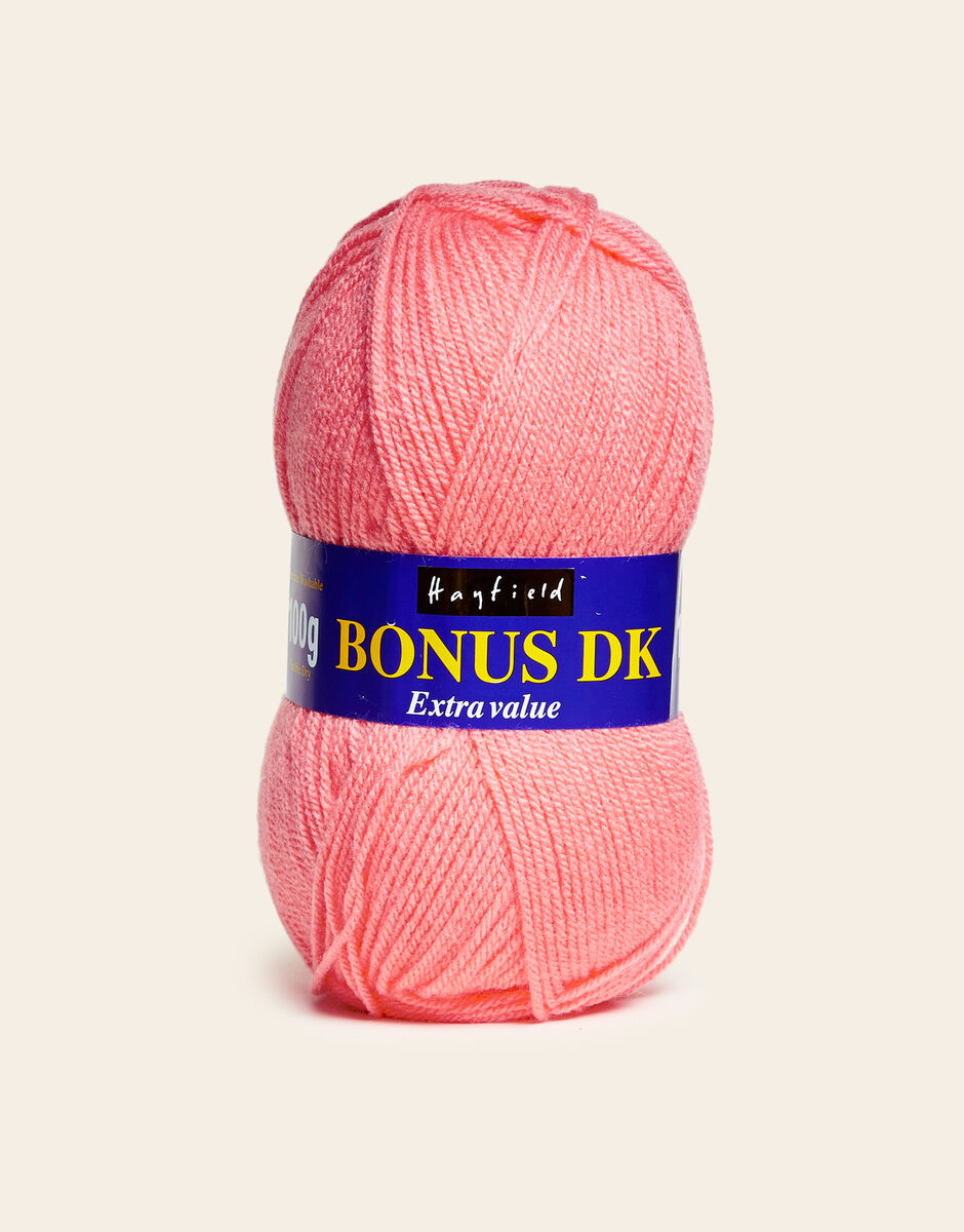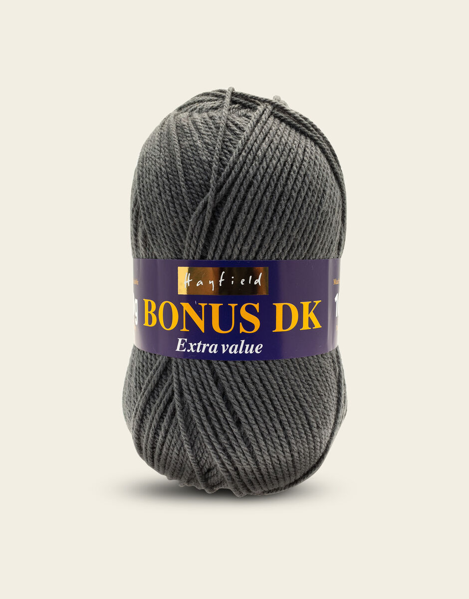 The best-selling weight in our popular Hayfield Bonus family, this double knitting yarn is a versatile, affordable quality acrylic. With 100 colours across ten trend-led themes, Bonus DK offers the most up to date colours for fashionable womenswear, stylish hand knits and crochet projects for your home. This soft, easy to knit, easy-c are yarn is machine washable.
