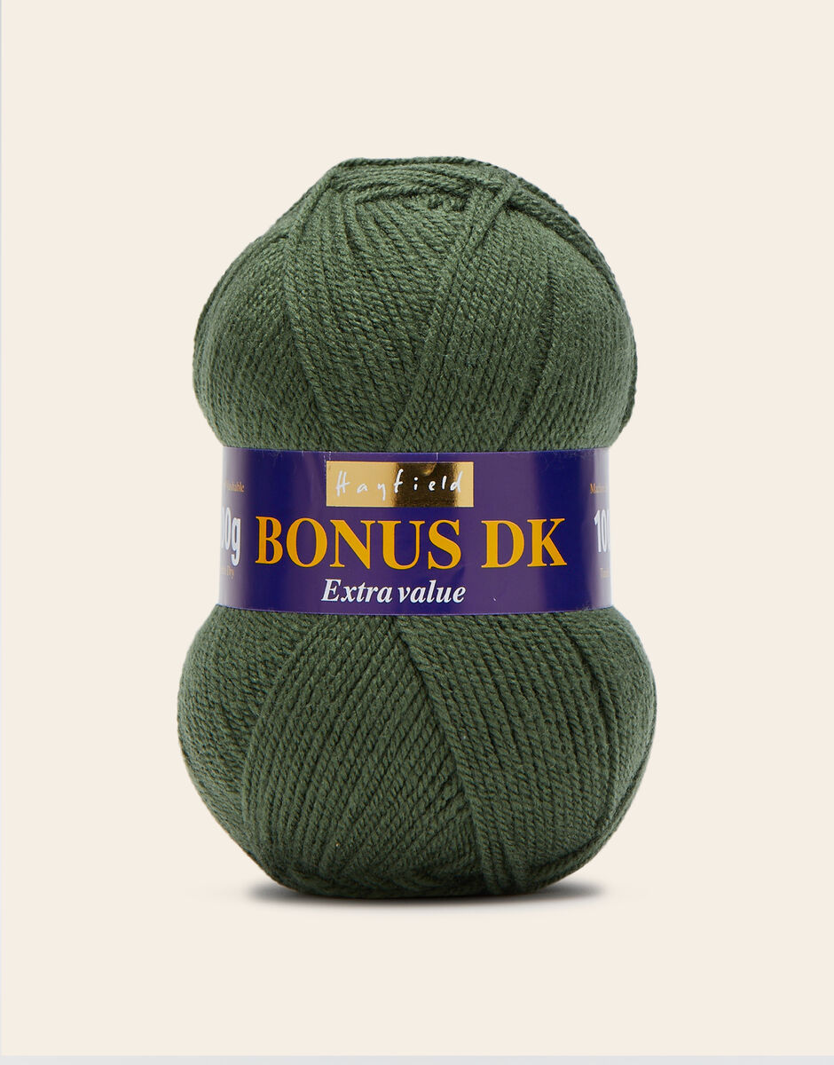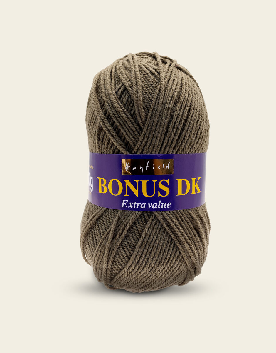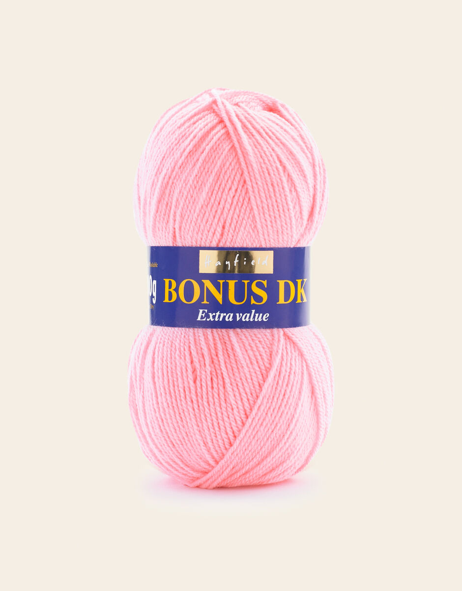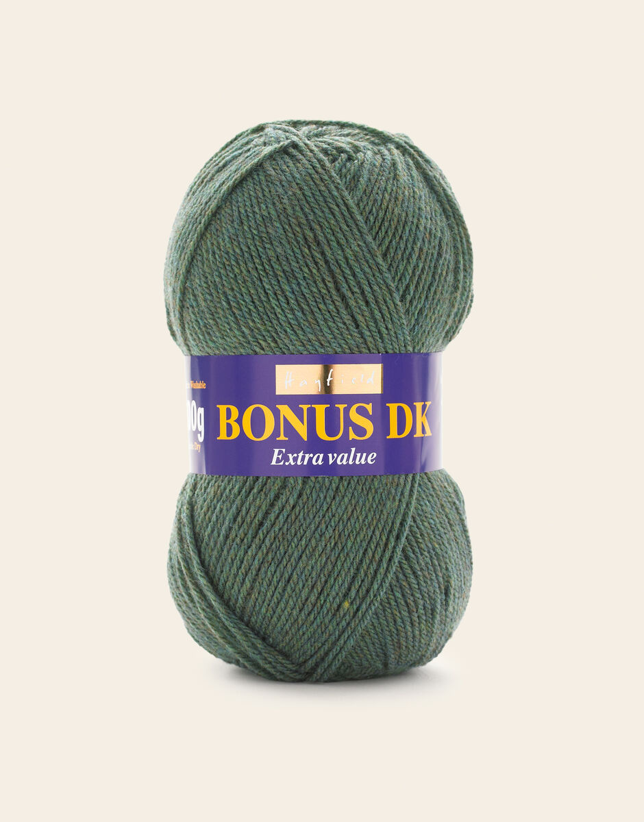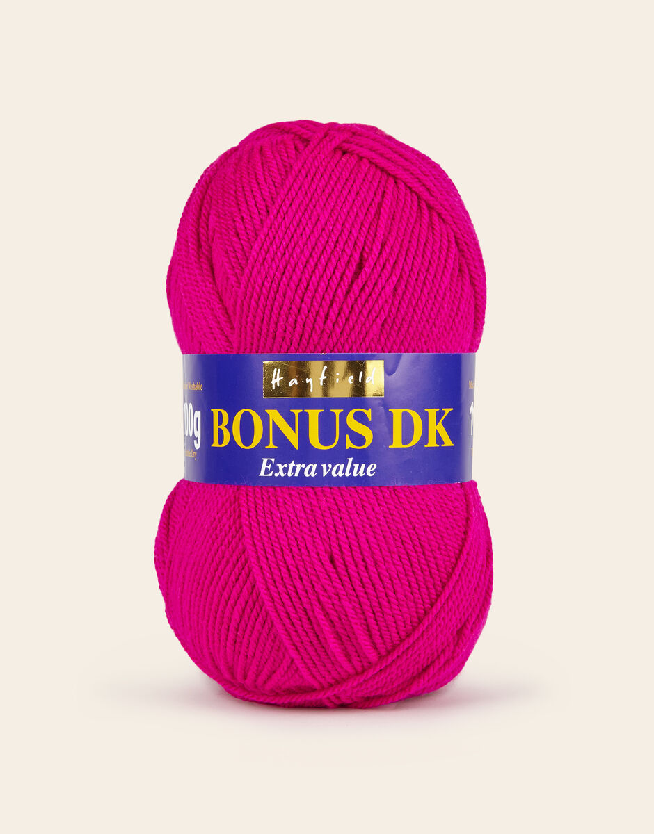 The best-selling weight in our popular Hayfield Bonus family, this double knitting yarn is a versatile, affordable quality acrylic. With 100 colours across ten trend-led themes, Bonus DK offers the most up to date colours for fashionable womenswear, stylish hand knits and crochet projects for your home. This soft, easy to knit, easy-c are yarn is machine washable.