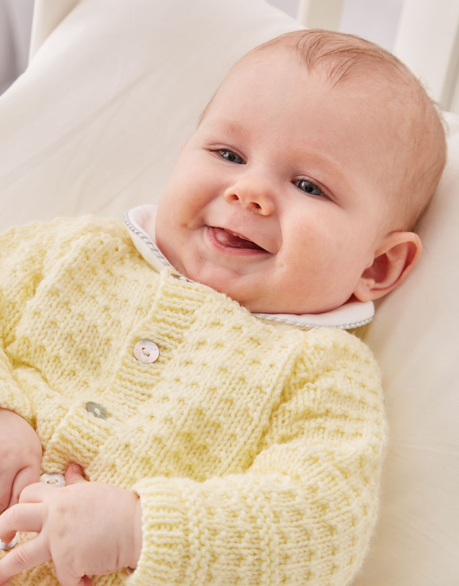 Timeless collection of 16 designs inspired by best-selling patterns from the Sirdar archive, reworked in Britain's favourite baby yarn. Our secret formula means Snuggly Double Knitting stays smooth, soft and gentle, wash after wash. Why not mix and match designs in traditional baby pastel shades to make the perfect gift set for your new arrival.