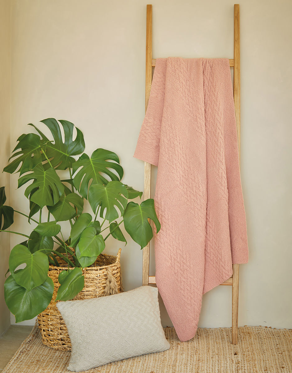 This soft banket and cosy bolster cushion, in complementary shades of Hayfield Bonus DK, feature co-ordinating chevron stitches for easy mix and match style. The blanket has chevron textured stripes while the one-piece cushion, with buttoned envelope opening, has an all-over chevron design. You can have fun choosing your favourite co-ordinating or contrasting shades from 100 Hayfield Bonus DK colours. Knitting level: Intermediate You will also need: 1 4mm 80cm (UK8 – USA6) Circular Needle, 1 Pair 4mm (UK8 – USA6) Knitting Needles. 5 buttons for cushion.