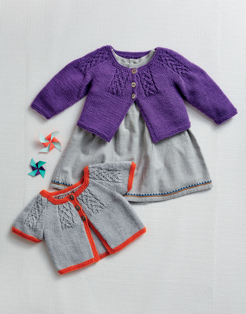 You will also need: Single Point Needles 4mm (USA 6), Single Point Needles 3.25mm (USA 3) and 3 Buttons for each Cardigan.
