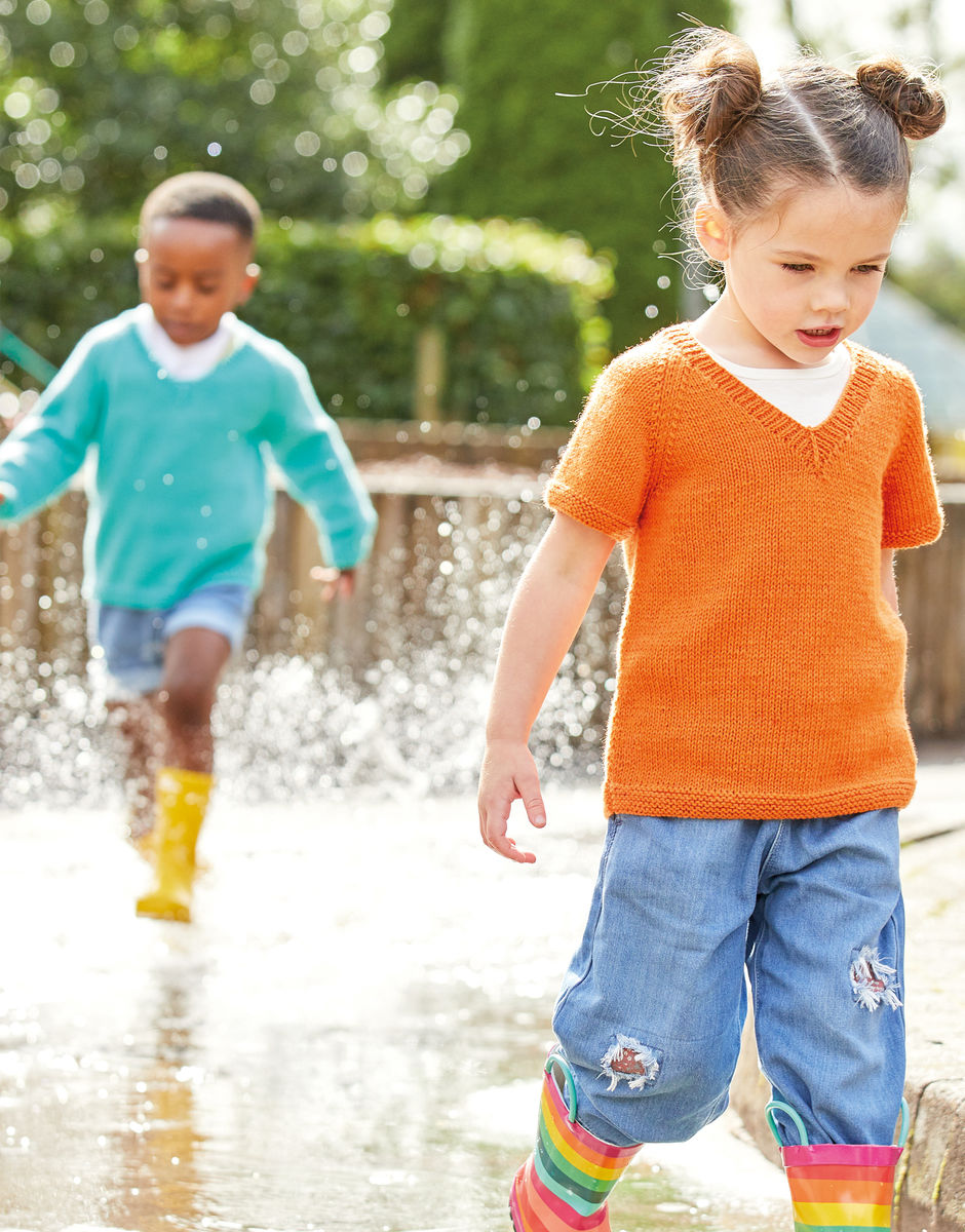 Our designers had enormous fun creating our Sunshine & Showers collection for growing Snuggly kids, in the boldest, brightest shades of Snuggly DK. Perfect for playtime indoors or out, we designed these cheerful knits especially for your three to seven-year-olds who are no longer babies but still love the Snuggly soft feel of the UK’s favourite baby yarn.