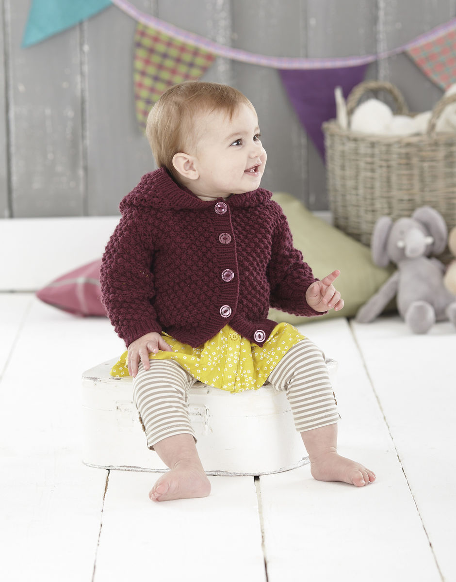With cosy textures like these, your little one will stay wrapped up warm this winter. Knit this cardigan, or the sleeveless waistcoat in our super soft Sirdar Snuggly DK. The most popular yarn in our Snuggly range, Snuggly DK yarn is easy-care and availbale in a wide range of shades. You will also need: Single Point Needles 3.25mm (USA 3), Single Point Needles 4mm (USA 6) and 5 [5:6:6:7:7] Buttons.