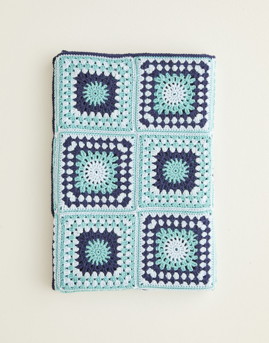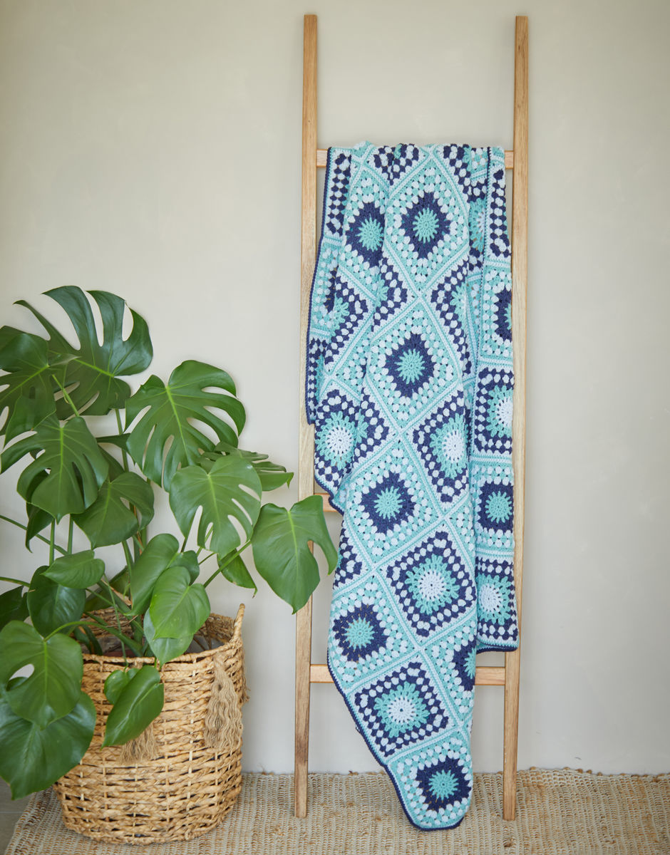 Part of our home comforts collection, this crochet blanket will brighten any blue Monday. A great piece for crochet beginners or granny square novices, the design is created from a single granny square pattern, repeated in alternating shades.