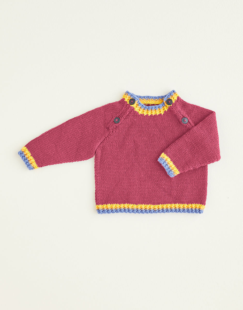 Treat your little one to a cute two-piece. The twisted ribs add a splash of cheerful rainbow colour, while the button fastening makes morning dressing and changing a doddle. Knitting level: Intermediate You will also need: 1 Pair of 4mm (UK8 – USA6) Knitting Needles, 1 Pair of 3.25mm (UK10 – USA3) Knitting Needles and Stitch Holders. For Shorts:- 2 3.25mm (UK10 –USA3) Double Pointed Knitting Needles or 1 3.25mm (UK3 –USA10) Circular Needle for I-Cord. 4 buttons.